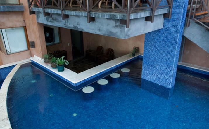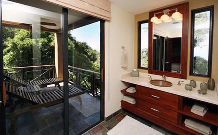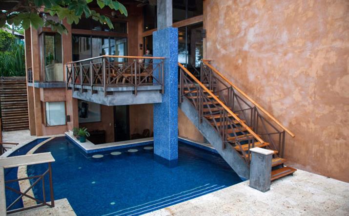 Pure luxury describes the most modern vacation villa in the Manuel Antonio/Quepos area. Casa Reserva is nestled in the hillside overlooking the new Marina Pez Vela. Take your choice of four balconies on which to sit, relax, and watch the brilliant Pacific sunset and exotic wildlife. The modern Bali architecture of this 4 bedroom home defines “comfortableâ€. From the moment you enter the stunning tropical entrance, you will view the beautiful blue waters of the marina. The smart-home features will make your stay truly relaxing. All rooms have plasma TVs and safes in the walk-in closets. (Cable and high speed wireless internet are provided as well.) The large kitchen, dining room, indoor bar, living area, and pool with swim up bar will provide you with more than enough room to entertain your family, friends and/or business associates.