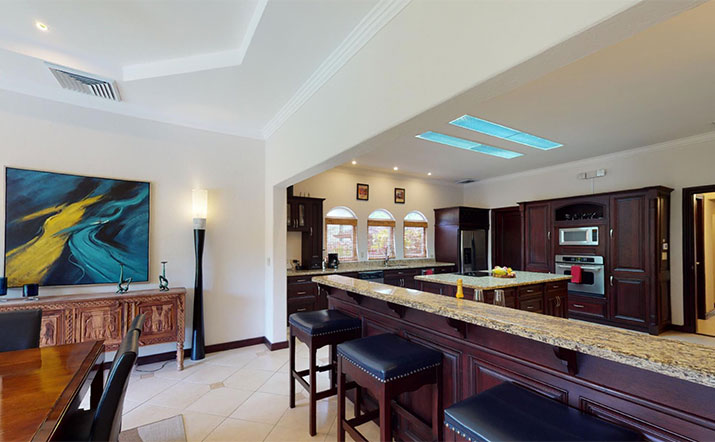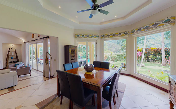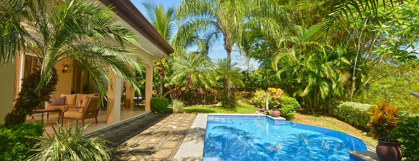 Casa Africana offers 5,900 square feet of interior living space and large covered terraces with views of the fairway and Herradura Bay. Amenities include a free-form swimming pools, a large game room with championship pool-table, barbecue area and lush landscaping.