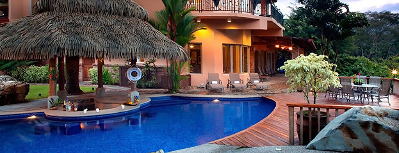 Casa Oasis was designed for large families, corporate clients and large parties that want a lush, secluded home with private amenities. Located above Los Sueños popular Eco Golf Course, this luxury estate home is just minutes from Los Sueños Marina. It is a 6000 sq. ft. house with 20 tons of central a/c with 4 separate a/c zones. The out door area with sun deck, Jacuzzi and swimming pool is perfect for entertaining. Over 50 fruits plants attract birds and rain forest animals.