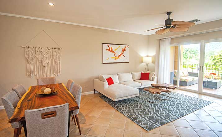 The Del Mar Condominiums feature a striking contrast between Mediterranean architectural design and the delicate landscape that characterizes this community. Del Mar is a haven for recreation and active living within Los Suenos.