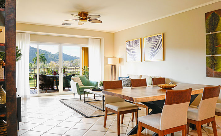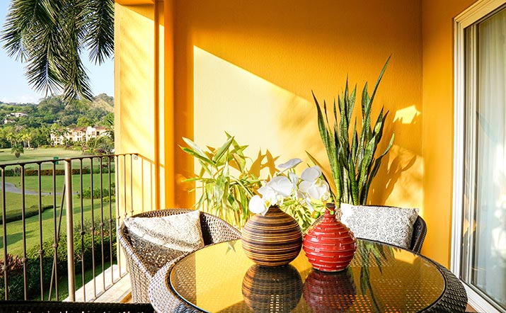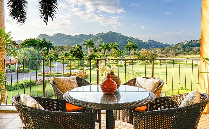 Covered terraces and balconies offer comfortable vantage points from which to take in the panoramic views of the beautifully manicured fairways of the La Iguana Golf Course.