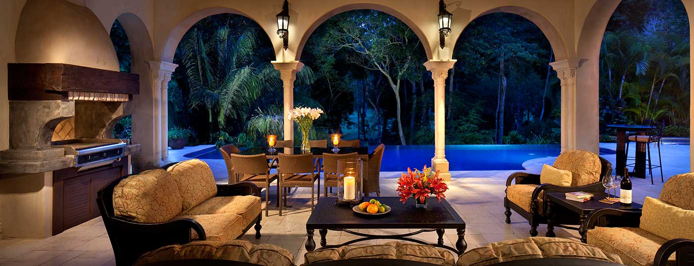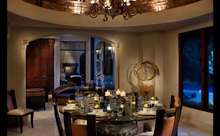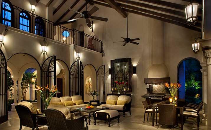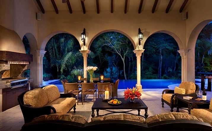Amenities include butler’s pantry and walk in refrigerator, LCD flat screen TV in all rooms, music system, Lutron light system, outdoor gourmet barbeque, full laundry facilities, two car garage and parking for golf carts with power outlets. For the convenience of the guests Villa Firenze has a full time maid. Private Chef and massage are available on request.