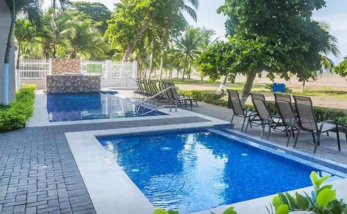 The Palms Jacó offers the most spectacular ocean views on Jacó Beach! Located at the north end of the beach, every unit has great sunset views, as well as sweeping views of the rest of Jacó Beach to the south. The Palms Jacó features a beachfront swimming pool and direct access to the beach. You'll also enjoy some of the amenities of Croc's Casino Resort with resort pool privileges . . . it doesn’t get better than this.