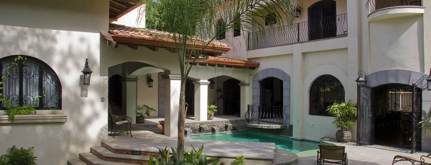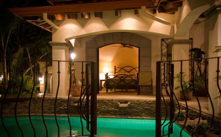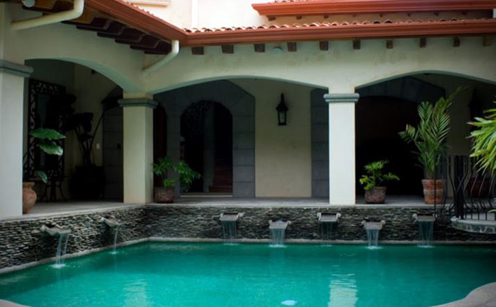 Located in the more desirable south beach in Jaco, Costa Rica, Villa Antigua has been awarded the most luxurious home in the vicinity. It sits just off of the beach, walking distance from the town itself. Surrounded by 9 foot high walls and a gated entrance, it proves to be both secure and private. Within the center of this beautiful home is a pool with running fountains and underwater lighting.